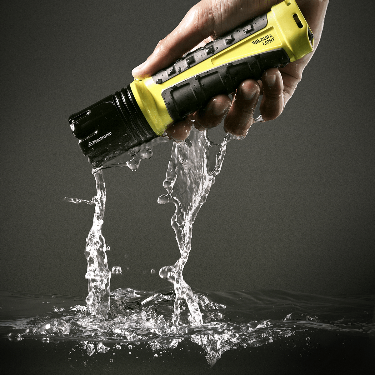 This flashlight features exceptionally robust housing, is resistant to shocks and mechanical damage, and has an IP68 rating. This ensures complete protection against dust and water and resistance to drops from up to 2 meters. The Dura Light 920 can perform in extreme conditions, such as high and low temperatures, humidity, and mud.